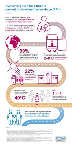 “The WHO’s addition of heat-stable carbetocin to the Essential Medicines List brings us one step closer to tackling this life-threatening condition that impacts thousands of women and their families,” said Klaus Dugi, Chief Medical Officer, Ferring Pharmaceuticals. “This milestone is thanks to collaboration from stakeholders around the world, and demonstrates how work across both the public and private sectors can help achieve development goals in global health. As the manufacturer, Ferring is now seeking registrations for heat-stable carbetocin and, once approved, our priority is to make heat-stable carbetocin available at an affordable and sustainable price** in public sector healthcare facilities in low- and lower-middle income countries where cold-chain transport and refrigeration of medicines is often difficult to achieve or maintain.”